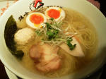 再訪。 味玉塩ラーメン+大盛り ¥850+100 もはやおなじみの、 鶏モモ、ムネ、つくね、味玉。 そんで透明感の高い琥珀色のスープ。 醤油の時のような節の旨みはなく、 鶏の凝縮した旨みだけがグンときます。 ちょっと例えが悪いかもしれませんが、 鶏鍋のシメのラーメンを食べてるような、 そんな安心感があり。 大盛りにしちゃったからだと思いますが、 ちょっと底の方が粉っぽかったけど、 普通盛りを頼めば多分問題ないと思います。 この店は醤油より塩かなー。 --- http://fakestar.blog.shinobi.jp/Entry/671/ |