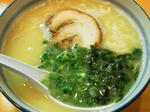 弘明寺商店街の入り口に新しい店が出来てました。 替玉無料だったので入ってみました。 白ラーメン ¥500 卓上には辛子高菜と紅生姜と刻み大蒜。 白濁豚骨スープに、ものすごく細い麺。 チャーシューはちょっとパサついてましたが、 博多ラーメンにしては肉肉しくて食べ応えはあり。 ワンコインなんでコスパはいいと思います。 |