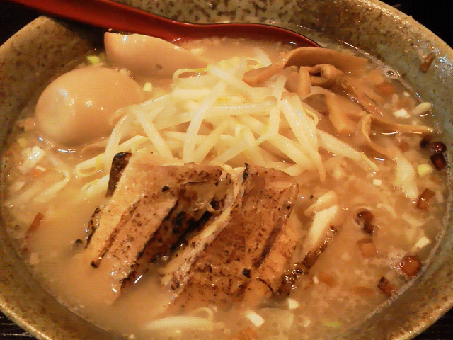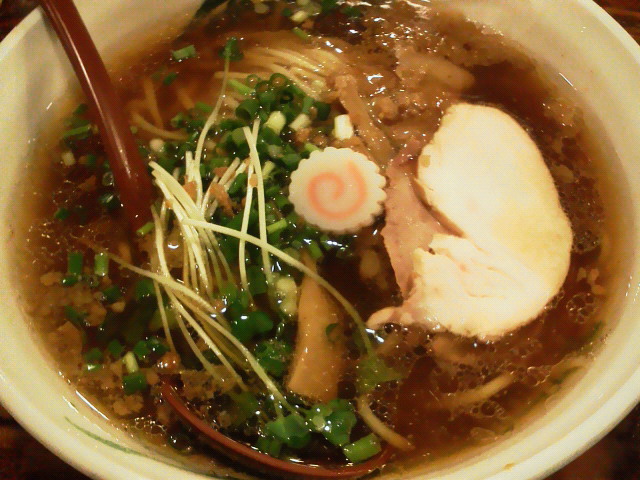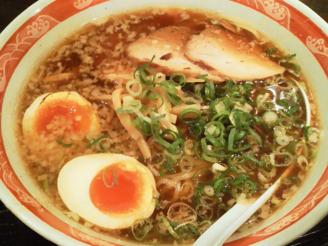 ボクシングの元チャンピオンの畑山が手がけてる?店です。 しかし畑山は青森出身なのになぜ尾道ラーメン系なのでしょう。 魂のラーメン(細麺) ¥750 麺は安っぽいですが、スープと具はなかなかのものです。 アリかナシかで言えばアリ。 --- http://ramendb.supleks.jp/s/7401.html |