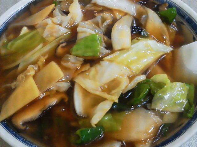 土曜になるとたいてい姉貴と母親と外出するんですが、 昼飯がたいていラーメンになります。 新潟のラーメン屋は良く知らんので、 姉貴が知ってる店になります。 今日はこの店。 店に入ると、全てに濁音がついた 「いらっしゃい」 でお出迎え。 長く商売を続けてきて出来上がったおやっさんの声です。 外観、内装は昭和の匂いが漂ってます。 田舎の大衆中華料理屋そのもの。 レトロな店の雰囲気を堪能して、 つぎに厨房の仕事具合を見てたら、 おやっさん黙々手際良く仕事してます。 そして客が来る度に威勢よくしゃがれた声でお出迎え。 ・・・ん? あれ? おやっさん良く見たら全くしゃべってない・・・。 じゃあ誰の声だ?と思って回りを見てみたら、 なんとそれは隣にいた女将さんの声でした。 これちょっと事前に知っておかないと、笑い堪えるの大変です。 ずるい。 椎茸そば ¥580 ふんだんに椎茸が入った、ちょっと甘めの醤油味の餡。 他の具は白菜、タケノコ、ピーマンと肉は一切入っていませんが、 ボリュームは十分です。 味は美味いし、女将さんのキャラが強い。 あと店がもうちょっと汚かったら、キタナトランに絶対出れると思います。 頑張って欲しいな。 --- http://ramendb.supleks.jp/s/19540.html |