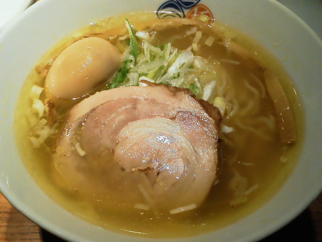 はい。けいすけの五代目は塩です。 塩らーめん琥珀 大人の燻製味玉入り ¥880 こんな感じでラーメンが出てきます。 蓋を取ると、燻煙がもわっと出てきます。 毎日違ったチップでスモークしてるみたいで、 香りを楽しんで欲しいそうです。 ものすごいいい香り。 で、肝心のラーメンの見た目はというと、こんな感じ。 具は味玉、チャーシューと穂先メンマですね。 どれも秀逸でした。 麺は角中太のウェーブ。全粒粉使ってますかね。 特筆すべきはやっぱりスープかな。 塩の尖りを丸めてかつ、塩味もさほど感じ無い。 どちらかというとスープの甘みがしっかりと感じられるよう、 塩を使ってるようなイメージ(スイカに塩みたいな)。 塩の中ではトップクラスかなー。満足しました。 --- http://ramendb.supleks.jp/s/51746.html |
