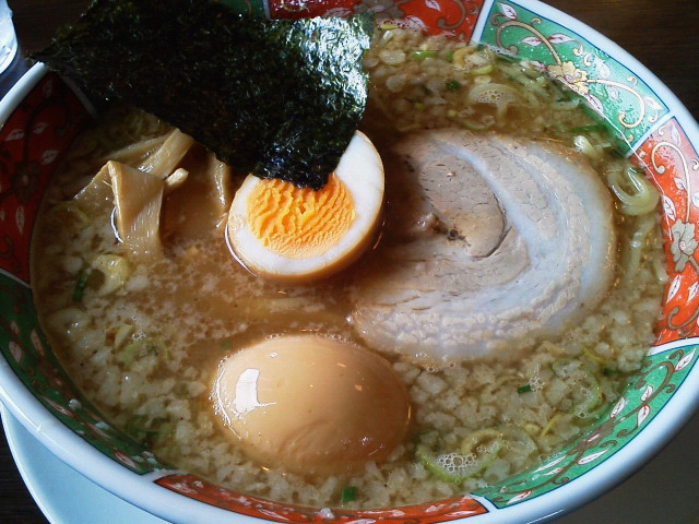 町田では1, 2を争うほどの超有名店です。 ちょっと引越しをして駅に近くなったので、通うには楽になりましたね。 私語厳禁等、店からの要求が紙で張られており、 その雰囲気などについては賛否両論ありますが、 味については十分満足していただけるかと。 2号らーめん味玉 ¥950 この店は携帯で写真が撮れんのです・・・。 前回はもう3年前なので参考にならないかもしれませんが、 前に食ったときはもうちょっと醤油の香りが立っていたように思います。 あと麺ももうちょっとパツパツだったような気がするんだが。 ま、味は相変わらず美味かったので、すごく満足ですけどね。 町田もこれで終わりだな。 友達が住んでたので、よく訪れていましたけど、 それも一旦は終わりだな。 お世話になりました。 --- http://ramendb.supleks.jp/shop/3998 |