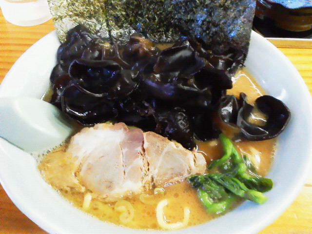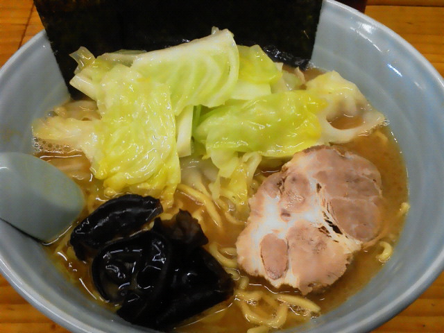 キャベツラーメン中盛り ¥800 典型的な家系なんですが、ウリはやっぱりコシの強いウェーブの麺。 これが(飲み干すのはちとキツイ)濃い目のスープをよく持ち上げます。 家系ラーメンの中では一番美味い麺の店、なんじゃないかと思いますね。 駅からもうちょっと近かったら通うんですけどねー。 --- http://ramendb.supleks.jp/shop/6289 |