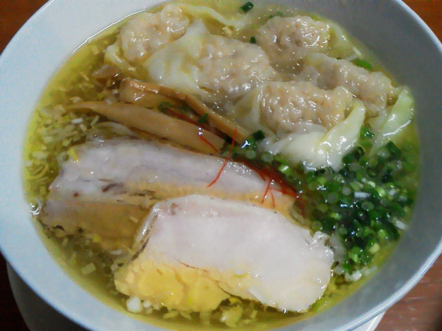 会社は計画停電対象外の地域とはいえ、残業で電気使うのは申し訳なく存じます。 塩らぁ麺 + ワンタン ¥750 + サービス --- http://ramendb.supleks.jp/shop/14836 |