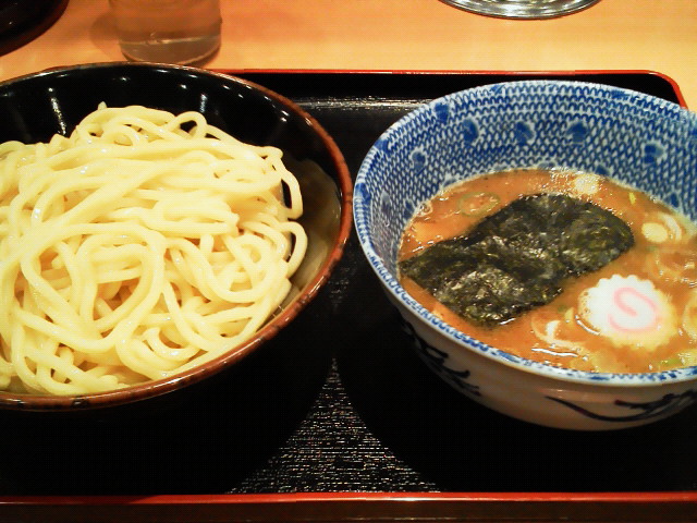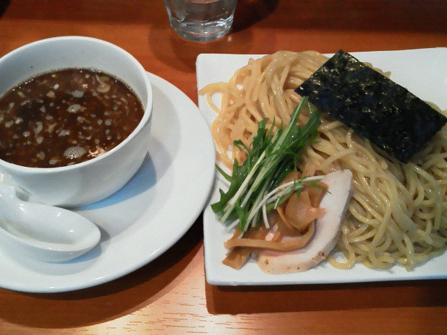 この店は確か僕がまだ学生だった時に出来た店だと思うんですが、今回が初訪問です。 つけ麺 ¥750 スープはつけ麺には珍しいサラサラの仕上がり。 魚介系ですが、節系が強いわけでもなければ魚粉も使ってない。 ただちょっとタレの塩分が強くて尖った味が出てるのが残念です。 スープ割り頼んで飲んでみたら丁度よかったくらい。 つけ麺のスープは濃い目に仕上げるのは分かるんですが、 味だけが強いっていうのはちょっと違いますね。 でも気になったのはそこぐらいで、麺、具は美味しかったです。 ラーメンにした方が良かったのかなー。 --- http://ramendb.supleks.jp/shop/311 |