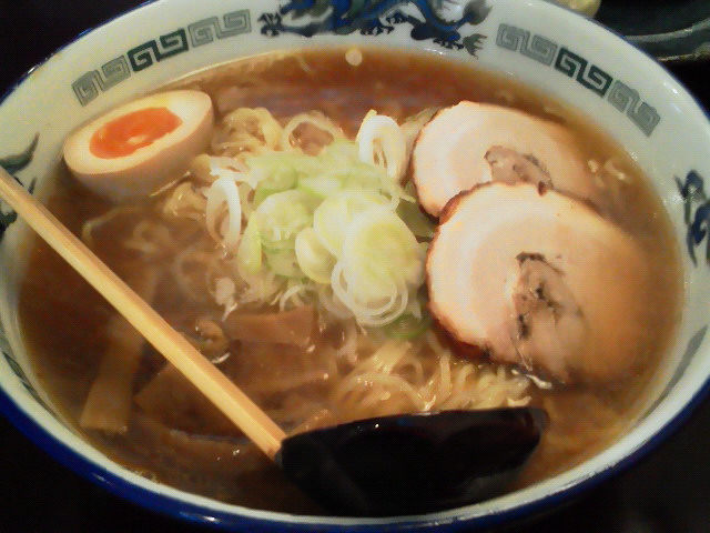 血は争えませんな。 今年105杯目。 醤油ラーメン+大盛り ¥530+0 スーパーで売ってる生ラーメンのような麺に、スーパーで売ってる生ラーメンのようなスープ。 まぁそんな感じのラーメンでしたが、今日は50円割引+大盛りキャッシュバックだったので、実質530円でラーメン食えたと思えば安いもんです。 気になったのは店員の中に一人だけ「九州ラーメンきんしゃい亭」っていうトレーナーを着ている人がいたことです。この人、注文間違ってラーメン出してたりで、どうも動きがぎこちない。ヘルプで入ってるのでしょうか? 今年もこれで食べ納めかな? --- http://ramendb.supleks.jp/shop/29926 |