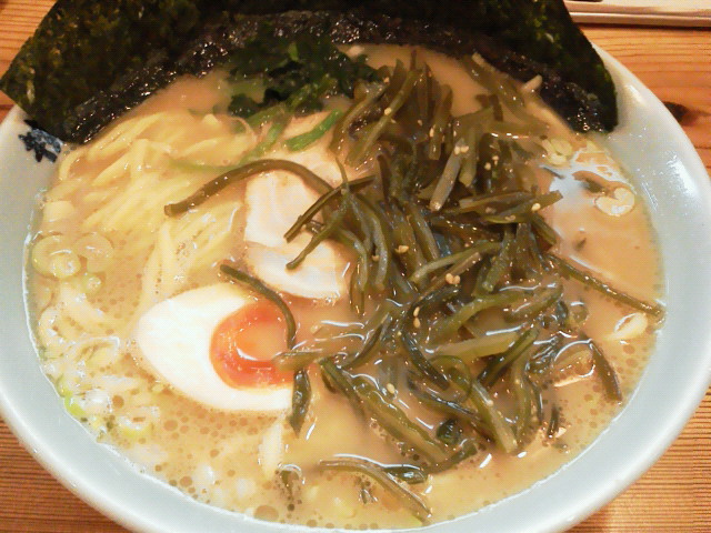 らーめん+中盛り+茎わかめ ¥650+100+100 麺の太さと同じくらいに切られた茎わかめがいいアクセントになってます。 超久しぶりに家系食ったので、完飲しちゃいました。 ごっつぁんです。 ---------- 横浜市戸塚区品濃町515-1-2-106 [営] 11:00~25:00 [休] 無休 |