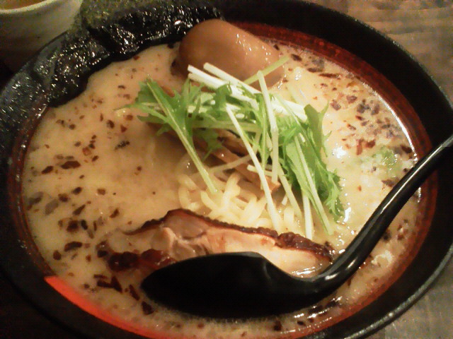 でなんか、店内に張り紙があって、 横浜のラーメン屋10店回るとオリジナル丼がもらえる企画があるらしくて。 横浜近辺ばかりだし、手軽に行けそうなんでちょっとやってみようかなーと。 で、丁度今日本社に戻る用事があったので、 1軒目は本社のすぐ近くの麺や維新からスタート。 吉備黄金鶏の鶏油ソバ ¥800 夜限定の一杯らしいです。 油そばがあり、具があり、鶏スープがありと。 食べ方は油そば、スープと別々に楽しむもよし、 つけ麺っぽく食うもよしと、まあ何でもありってことですね。 油そばってそういや初めて食った気がしますが、ちょっと微妙ですね。 味は美味しいんですが、肝心の麺は氷で〆られてないからコシの強さは楽しめない。 ゆでた麺をそのまま放置したような、なんかちょと残念な食感です。 というわけでつけ麺風にして食うことにしたんですが、これが美味い! 麺に絡まってるタレとスープが美味く合わさって良い感じ。 麺のびみょ~な食感も全然気にならない。 ミニラーメンって感じですね、こりゃ。 まあ、結局ラーメンは普通に食うのが一番ってことかな~。 --- http://ramendb.supleks.jp/shop/14836 |