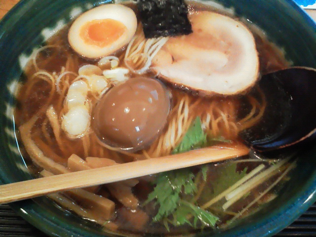 醤油らーめん(大盛り)+味玉 ¥700+100 う、 う、 うまーーーーい!!!! 魚介と鶏のバランスが絶妙なスープです。 旨みは何かが突出してるわけでもなく、味も濃くも薄くもなく、 いくらでも飲み続けられるほど澄んでいて、滋味深い。 体に染みわたります。 これに合わさってるのはパツパツ低加水の麺。 具は箸でスーと切れるほどの柔らかいチャーシューと、 存在感のある食感のメンマと、仕上がりが完璧な味玉。 何もかもが僕のドストライクでした。 やっぱり町田はレベルが高ぇ。 --- http://ramendb.supleks.jp/shop/5955 |