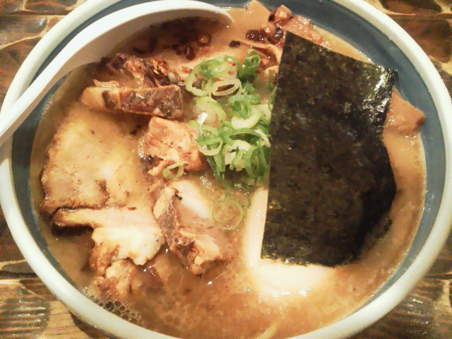 らーめん ¥790 同じ長浜系のラーメンである一風堂とつい比べてしまうんですが、 スープは一蘭のほうが濃厚。脂が多いけど臭みは無し。 麺は堅めで頼みましたが、こちらの方がちょっと粉っぽさを残してますね。 チャーシューもこっちの方が旨みがあるような。 それにしても長浜系のチャーシューってどうしてこうペラペラなんでしょう。 昔は断然、一風堂>一蘭だったんですけど、 好みが変わったのかな、味的には一蘭>一風堂な気がしました。 でも店の雰囲気はやっぱり好きになれないんだよな。 また行ってみようと思うのは一風堂の方なんです。 替玉も160円って高いしな。 --- http://ramendb.supleks.jp/shop/28554 |
