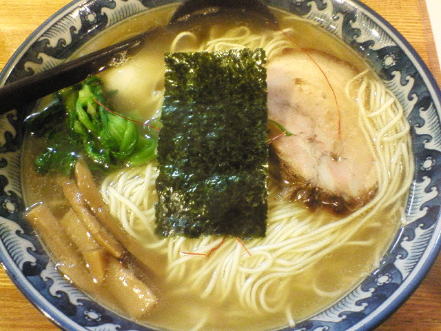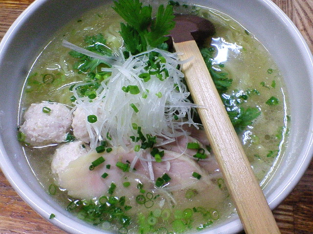 うむ、今年も100杯ペースです。 なんか期間限定の味噌ラーメンやってるってことだったんで 行ってみたんですが、あいにく既に売り切れ~。 というわけで、多分一度も食べたこと無いこれを注文。 柚子塩らーめん ¥880 女性人気No.1というだけあって、あっさりさっぱりのスープです。 鳥の旨みを存分に感じつつ、柚子の香りが効いていて、これはいくらでも飲めますな。 極細の麺ともよく合います。 ちょっと薄めの炙りチャーシューと、味玉が半個。あとメンマと海苔。 一通り欲しい具が揃っているのも素晴らしい。 香りの強い三つ葉を使うのはどうかなーと思っていたんですが、 柚子の方がやっぱり強いのでぶつかってはなかったですね。 まあ逆に言うと無理に使わなくても良いような気もしたんですけど。 --- http://ramendb.supleks.jp/shop/57 |