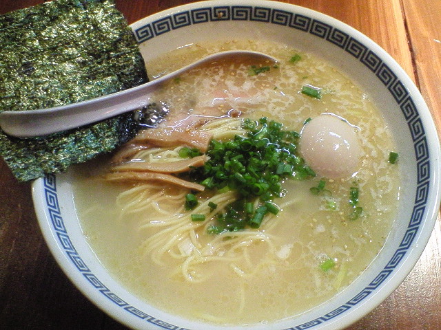 塩らーめん+味玉 ¥660+90 鶏白湯?の濃厚なスープに魚介の香り・旨みが後から来ます。 美味いんですけど、なんか人工的な味を感じました。 麺は角がない細めストレート。弾力もあって小麦の香りもあって美味しいです。 チャーシューはちょっと小さめなのが残念。 メンマは歯応えがしっかりした仕上がりですが、決して筋張ってるわけではなく これはこれで可です。 味玉はよく見なければ分からないくらい白身全体にうっすらと色がついていて 味のムラが一切無いです。それでいて黄身も白身も柔らかく仕上がっていて、 完璧と言っていいんじゃないでしょうか。 700円くらいにしてもいいからもう少し具材とスープに力を入れたら良いのでは、 と思いました。十分美味いんですけどね。 --- http://ramendb.supleks.jp/shop/1399 |