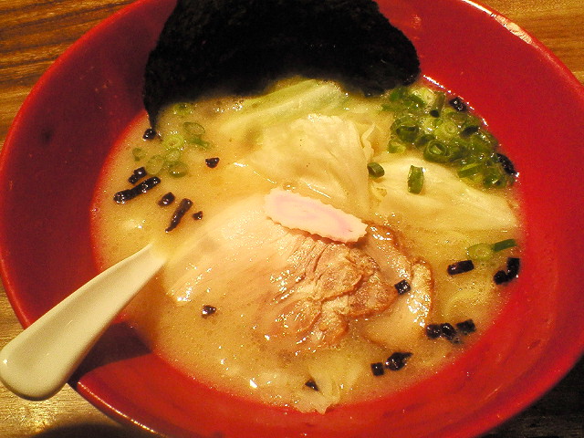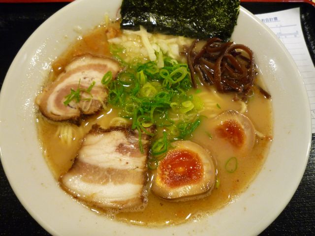 味玉豚骨ラーメン ¥750 魚介がベースの店なので、普通に醤油とか塩を頼めばよかったのに、 なぜか豚骨を注文&後悔。 豚骨の主張は抑えられていて、魚介の香り&旨みがしっかりと感じられます。 まさしく魚介豚骨。美味い。 麺は細めのストレート+もっちりとした食感で腰もありと、僕のどストライクです。 味玉&チャーシューも文句無しです。 完成度高し。すばらしい。 駅前にありながら22:00まで営業してます。 横浜にあったら間違いなく通う店ですね。 --- http://ramendb.supleks.jp/shop/7179 |