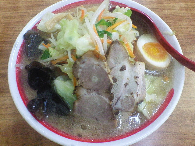 駅前はあんまり選択肢がなかったのですが、 「彦根名物ちゃんぽん」って幟があったので ウソだとは思いつつ入ってみました。 野菜が不足してたし。 和風ちゃんぽんスペシャル特大? ¥1000 麺も具も大盛りのやつです。 具が多くてなかなか麺にたどり着きません。 麺は中太ストレートの多加水。 スープはなんか俺が家で作ったような味です。 # 豚肉とキャベツとモヤシと炒めて水注いで、ウェイパー入れたら多分こんな味になりますよ。 まあ、それよりは美味いと思いますけど。 麺も具もこれだけの量だと途中から食うのきつくなってきますが、 酢を多くいれれば問題無しです。 満足満腹です。 --- http://ramendb.supleks.jp/shop/11403 |