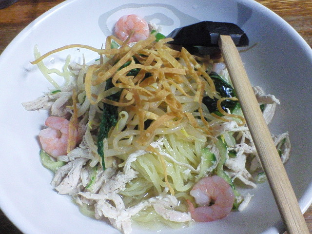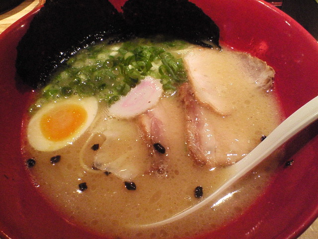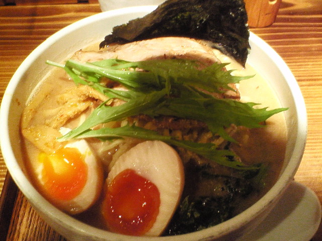 本店かさね味 ¥850 麺を箸で持ち上げた瞬間、麺が違ってることに気づきました。 普通のやつより太いし、食感も若干もちっとした腰のしっかりした麺。 「あれ~、麺変えたのかなー?」 「でもこれはこれで美味いなー」 と思いながら麺を食べ終え、替え玉を頼んだら 「麺が細くなりまーす」 と店員さんに言われたました。 なるほど、かさね味は麺が別なんですね。 ということは、この店つけ麺もあるんで、三種類麺があるということですか。こだわってますなぁ。 # 前の記事見たら、ちゃんと麺が違うってこと書いてましたね・・・。 # 完全に忘れてました。 # でもどっちの麺も美味いので、かさね味で替え玉っていう選択もアリかなと思いました。 --- http://ramendb.supleks.jp/shop/20634 今日は色彩検定2級受けてきました。あんな問題で受験料10000円ですか。ありゃーぼったくりだなー。 |