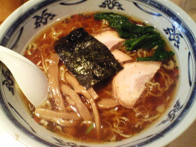 らーめん ¥600 ニラ、もやし等を使ったラーメンが名物のようですが、 初来店なのでまずは普通のラーメンを。 スープは鶏と鰹の昔ながらのスープといった感じですが、深みがありつつスッキリしてて美味いです。 醤油も強めに主張するタイプですが、こういうの僕好きです。 麺はちぢれが強めで、スープがよく絡んでこれまた美味い。ただちょっと延びが速いかな。 食感は多加水なんですけど低加水なんでしょうか。 具もどれをとっても美味い。チャーシュー、メンマにも仕事の丁寧さが表れてます。海苔まで美味い。 とってもレベルの高い「中華そば」って感じです。 値段も良心的だし、また行きたいなー。 とりあえず明日からダイエット始めます。 体重:65.6kg 体脂肪率:15.0% ↑一応体重計で量りましたが、多分、これ嘘です。とりあえず醜い腹回りをスッキリするべ。 --- http://ramendb.supleks.jp/shop/3490 |