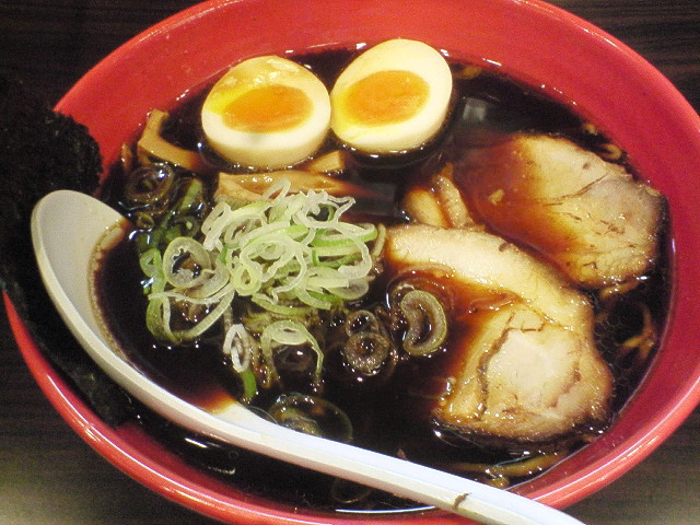 味玉黒醤油 ¥880 黒いスープが特徴の、富山のご当地ラーメン「富山ブラック」。 しょっぱっ! うーーーん、醤油の味が相当強いのは別にありですが、 それを支えるベースのダシにコクがない。 麺、具はともに無難な仕上がり。 これといって特長が無い、ただ濃い味のラーメンという感じです。 # スープを飲み干さなかったのは久しぶりです。 「白えび塩らーめん」の方がよかったかなぁ。 --- http://ramendb.supleks.jp/shop/20197 ------------------------------ 今日の計量。 体重:66.0kg (+1.2kg) 体脂肪率:14.0% (-0.5%) |