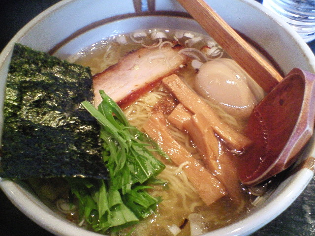 店内は携帯、私語禁止。BGMもなく店長が1人で黙々とラーメンを作り続けています。 店の外には1人店員さんがいて、中をチラチラ除いて様子を伺ってます。 (店長さんの)気が散るから、という理由で多分店の中に入れないのでしょう。 2号味玉 ¥850 細めのストレートに、鶏油がたっぷりかかった比内地鶏の醤油スープ。 具は細長いメンマが1本と、鶏と豚のチャーシュー(計量器で重さを量ってました)。 味としては濃い目なのでしょうが、タレで使ってる醤油がとにかく美味い。 これだけ醤油が前面に出てるのに円みがあって香りもあって、嫌な感じが全然しません。 チャーシューはジューシーなタイプではないですが、なんかムチムチしてて食感が面白い。 店の雰囲気については賛否両論あると思いますが、味は間違いないのでぜひ食べてみて下さい。 --- http://ramendb.supleks.jp/shop/3998 PR |