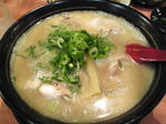 なんつっ亭、せたが屋などの人気店が入っているのですが、 さらに初代けいすけも入ったみたいです。 これだけの有名店を揃えるのはすごいですねぇ。 雲のらーめん ¥850 1日50食限定に惹かれて注文。 スープの味は鰹ベースですが、驚きは異様にどろっとしてることです。 これが平麺にからみます。 チャーシューは炙っているんですが、トロットロッに柔らかい。 美味いっす。美味いんだけど、なんかすんごい不思議な感じのラーメン。 ラーメンというよりはパスタを食ってるような感覚でしたね。 --- http://ramendb.supleks.jp/shop/248 |