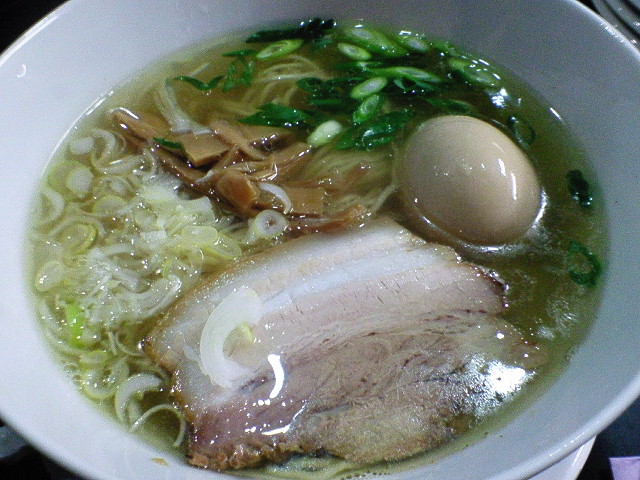 味玉塩らーめん ¥値段忘れた 麺は細麺ストレートで、スープはいわゆる動物系と魚介系のダブル。 メンマ、チャーシューは丁寧な仕事してるなーって感じ。 味玉は味噌に漬けてるんですかね?ほんのり味噌の香りがしました。 店の様子とか使ってる食器とか、最近のオサレなラーメン屋に多いですね、こういうの。 でも厨房は分業も出来ないほど狭くて大変そうです。 会社からとても近いし、味も美味しいので、潰れないでほしい店ですね。 --- http://ramendb.supleks.jp/shop/14836 |