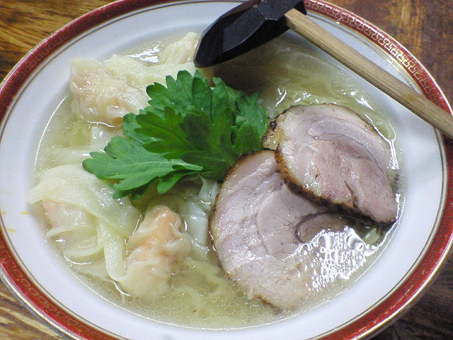 実はすみれにはぜんぜん人が並んでなくて、 変わりに大勢の人が並んでいたのがこの店。 ここの店はメンマとキムチが食い放題のようです。 名古屋コーチン鶏塩 ¥950 トッピングにレタスの千切りがのっています。 レタスラーメンってのはありますけど、千切りで使っているのは珍しい。 スープを一口飲んで、麺を食べて、どこかで食ったことある味だなぁと感じました。 思い出すのにちょっと時間がかかりましたが、 中華料理屋で出てくるラーメンの味にそっくり。丸鶏でダシとった清湯系のラーメン。 レタスとか使うあたりもそうなんですが、多分店長さんは中華料理屋さんで 修行した経験があるんじゃないでしょうか。 チャーシューも歯ごたえがありつつも柔らかくて旨い。 一緒に頼んだチャーハンはちょっとしょっぱかったですが・・・、 ラーメンの旨さはいい素材使ってるだけあって納得の味でした。 相当旨かったです。 --- http://ramendb.supleks.jp/shop/296 PR |