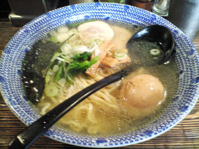 改めて食べてみると、結構美味い。 味玉も好みの柔らかさ。でも冷たいのがちょっと残念。 スープは鶏ベースですけど、化学調味料を使いすぎなのかな? 今ひとつ鶏の味が前面に出てきてないですね。ここが本丸亭との違いですな。 その証拠に食べ終わった後にものすごい喉が渇きました。 ピークは食べ始め、かな。。。