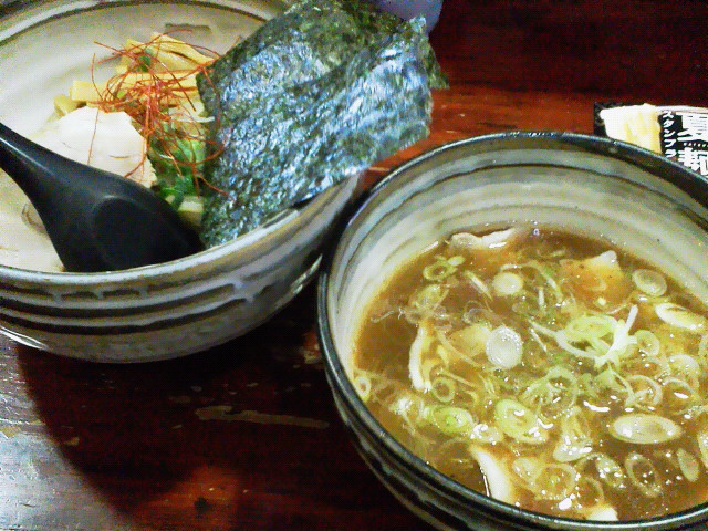 あっつい! そんで今日は不運続きで嫌になる。 つけ麺 ¥850 ご主人の息子さんが手伝ってました。 ちょっとお釣り間違えてましたけど、 言葉遣いは丁寧だし、接客に関してはもうプロ。 魚粉の効いたさらさらのつけ汁と細麺です。 こういうタイプは当然絡みがよくないので、 塩味が強めになっちゃうんですよねー。 つけ麺好きな人でも好みの分かれるとこだと思います。 --- http://ramendb.supleks.jp/s/54354.html |