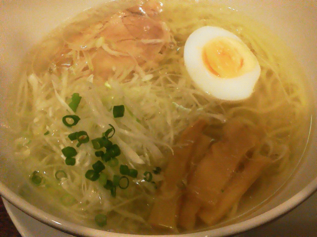 月一くらいのペースで金曜の夜はこの店に行きます。 なんと3周年記念とやらで、塩ラーメンがサービス価格で販売してました。 塩ラーメン ¥300 恐ろしいほどの透明感と滋味溢れるスープ。 麺も美味いし、具にも手抜かりなし。 引き算の美学が出てます。 サービスとは言え、これを300円で出せるっていうのは恐ろしいことだ。 |