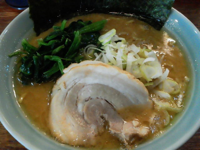 堰を切ったようにラーメン。 3年ぶりの鶴一家。 今年15杯目。 ラーメン ¥680 完全な家系。 麺は細めのウェーブ強め。スープとの絡みはGoodです。 スープは濃厚が売りのようですが、豚骨自体はそこまで強く感じ無いですね。 タレが濃い目なので醤油の味をしっかり感じます。 家系ではおなじみの具のほうれん草ですが、 ここは量が多いですね。あとクタッとしてるんだけど、食感はシャキシャキです。 これはすごい。 駅近辺の家系ではNo.1という評判も分かる気がします。 --- http://ramendb.supleks.jp/s/25815.html |