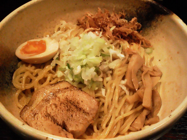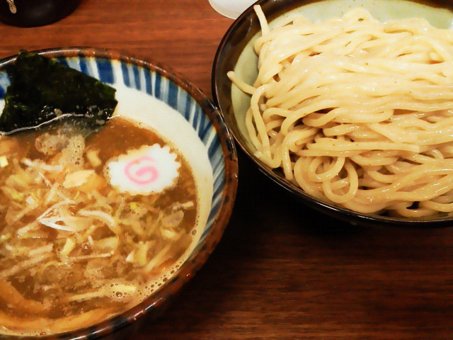 ようやく行くことができました。 味玉剛つけ麺大盛り ¥850 謳ってる通り、 一回では噛み切れないほどの腰の強さの太麺。 つけ汁もこれまた濃厚な魚介系。 でも思ってたよりサラサラしているし、 麺もツルツル系だからそこまで絡みはないかな。 卓上にIH調理器があるので、 冷たくなったら温めることができるのですが、 それに対応するため、容器の底がまっ平らになってるんですね。 だからすごく持ちづらい。 しょうがないといえばしょうがないけど、なんか残念。 具は味玉とキャベツと角切りのチャーシューが2片。 メンマが欲しい。。。 --- http://ramendb.supleks.jp/s/10909.html |