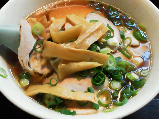 久々。 ラーメン+味玉 ¥700+サービス 煮干+柚子の組み合わせで濃厚なスープの中に 清涼感を与えてるのですが、 ちょっと苦味が重なるのが気になりました。 --- http://ramendb.supleks.jp/s/29756.html |