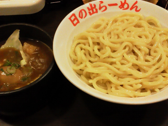 あー、もう4月だなー。 一番だしつけ麺 ¥750 全粒粉の中太麺にサラサラ系の鶏と煮干のスープ。 絡みは薄めですが、スープの脂がちょっと多めなのかな、 濃厚さはちゃんと保ってます。 ただスープが冷めたときに 塩分がちょっとキツめにきますね。 人間の味覚上しょうがないことですが、 ここまで強く感じるのと評価変わってくるかなと思います。 器をアツアツにしとくだけでも回避できると思うんだけどな。 少々残念。 --- http://ramendb.supleks.jp/s/24142.html |